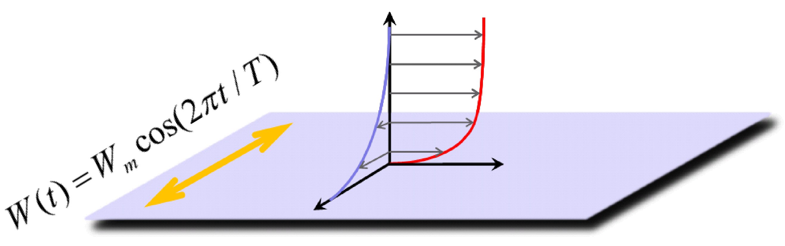 Dans le but de réduire la traînée, de nombreuses études ont mis en place des dispositifs de réduction par manipulation de la couche limite. Pour la présente étude réalisée à partir d'une simulation directe d'un écoulement de canal plan à bas nombre de Reynolds, nous nous sommes concentrés sur la réponse de la turbulence de proche paroi et de la force de frottement lorsque celles-ci sont soumises à une couche de cisaillement de Stokes instationnaire, induite par un mouvement transversal oscillatoire des parois supérieure et inférieure du canal. Il a été en particulier observée une hystérésis dans la croissance et décroissance de la traînée qu'il a été possible d'associer aux variations des propriétés de la sous-couche visqueuse. Lorsque le taux de cisaillement produit par la couche de Stokes est important, il provoque une rotation des vecteurs vitesses qui freine la génération de structures turbulentes ; et durant la période pour laquelle le cisaillement de la couche de Stokes devient négligeable, le cisaillement dans le sens de l'écoulement est alors dominant, ce qui favorise la régénération de la turbulence. Il a ainsi été mis en évidence l'interaction entre la traînée et la turbulence de proche paroi lorsque celle-ci est soumise à une couche de cisaillement de Stokes instationnaire.